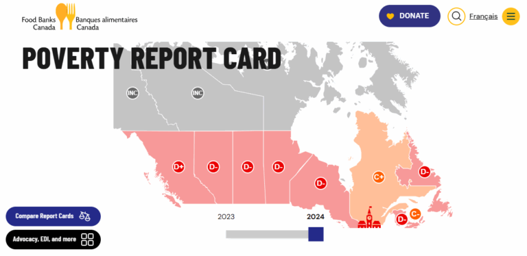 Food Banks Canada Poverty Report Card 2024 Click to go to Food Banks Canada’s website to use interactive map.