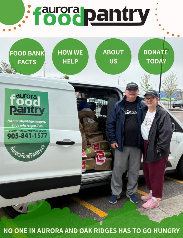 The Aurora Food Pantry has been providing food assistance to residents of Aurora and North Oak Ridges since 1990